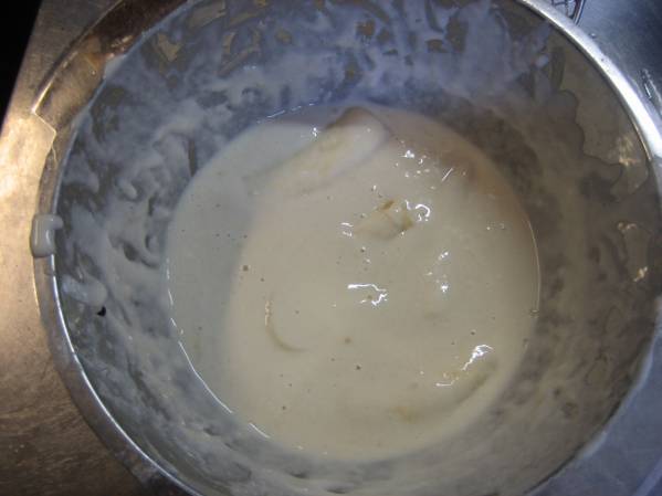 - Dit langzamerhand onder goed roeren verdunnen met de overige melk.