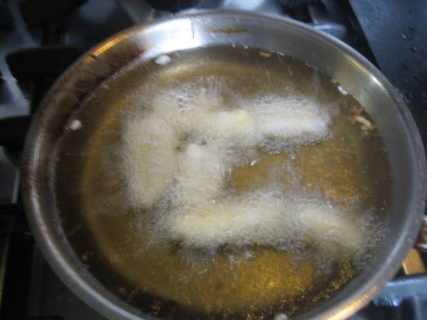 - Bak ze in de hete olie (zo´n 6 à 7 minuten) tot goudbruin.